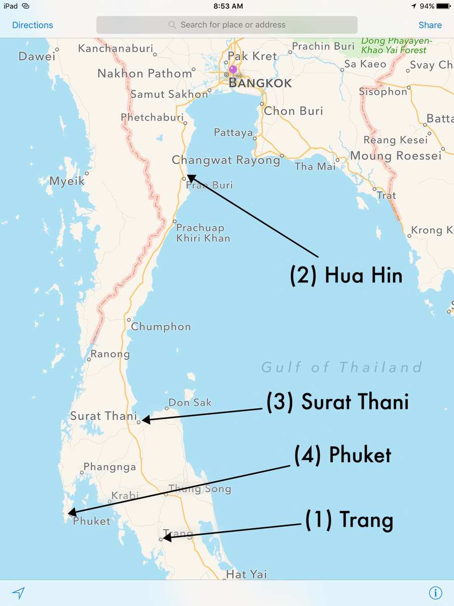 По последней информации, в результате двух взрывов в провинции Сураттхани погиб один человек, двое пострадали. На острове Пхукет пострадал один человек, в Хуахине при взрыве ранены четверо, один из пострадавших позже скончался, при взрывах в провинции Пханга о пострадавших не сообщается. Серия взрывов последовала за терактами, произведёнными накануне в городах Транг и Хуахин.