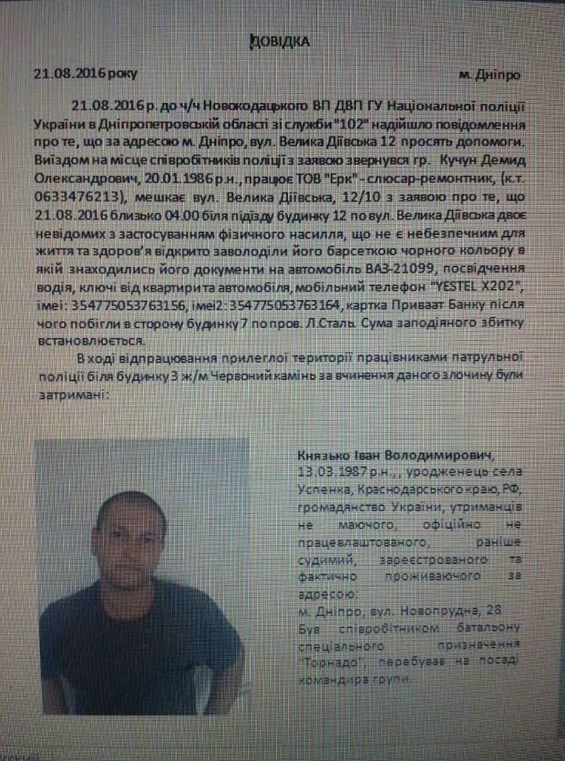 Так, в Днепре сотрудники патрульной полиции задержали двух карателей из «Торнадо», которые пытались украсть барсетку.