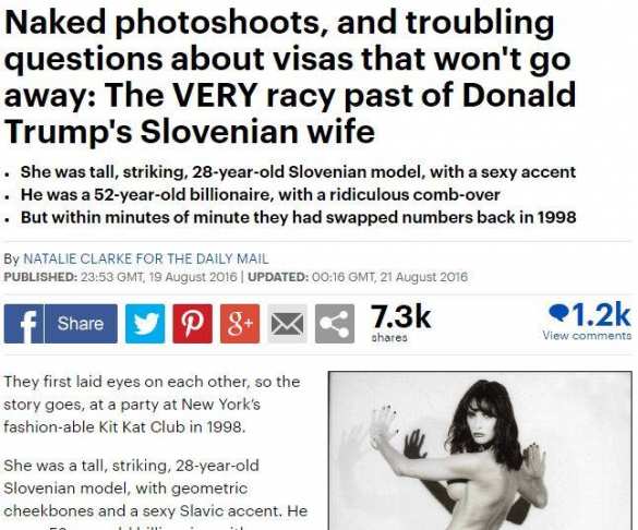 Газета The Guardian сообщает, что также в статье таблоида утверждалось, что, кроме работы в агентстве эскорт-услуг, Мелания Трамп нарушала миграционное законодательство США не имея соответствующей визы.