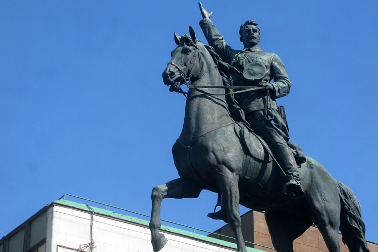 Конная статуя комдива времен Гражданской войны 1917—1922 гг. с декорированным карнизом и барельефами, изображающими батальные сцены, была установлена в Киеве в апреле 1954 года к 300-летию воссоединения Украины с Россией.
