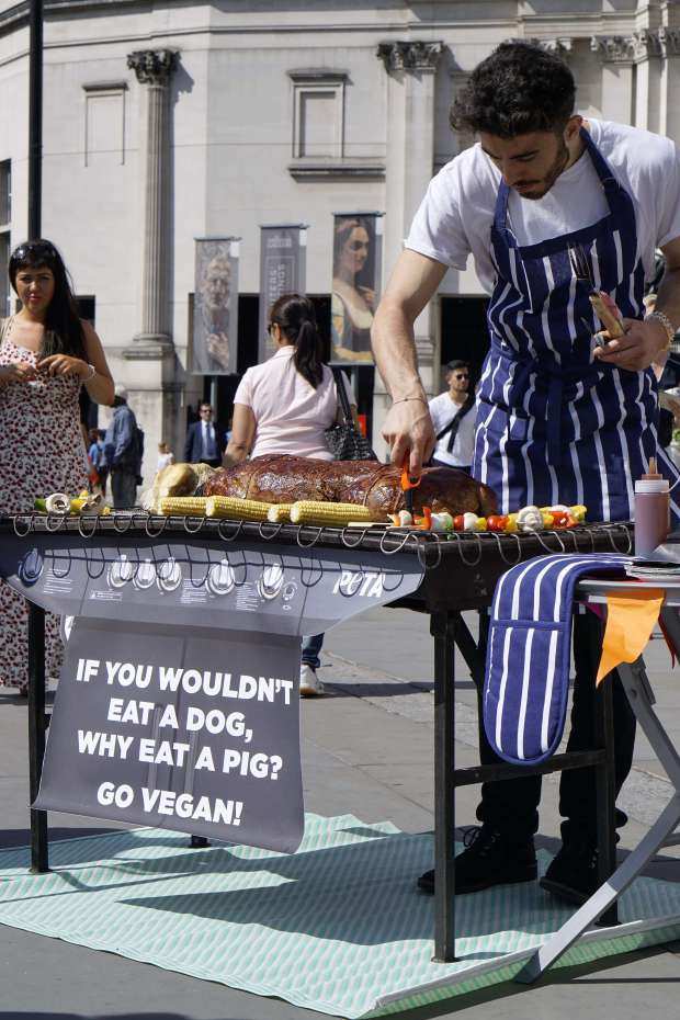 Участники зоозащитного движения PETA приготовили «барбекю из собаки» на Трафальгарской площади, сообщает газета Metro.