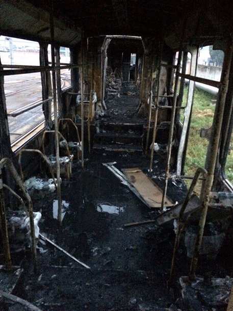 Хотя, по утверждениям ГСЧС, пожар был оперативно ликвидирован, два патриотичных жовто-блакитных вагона трамвая оказались полностью уничтожены огнем.