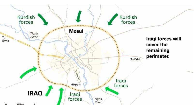 Тем временем Ирак также перебрасывает большие колонны техники и солдат всех родов войск к Мосулу, заявляя, что все готово для наступления, которое начнется в ближайшее время. При этом Багдад не потерпит участия турецких войск в готовящемся штурме и иракское правительство сделает все возможное, чтобы воспрепятствовать армии Эрдогана.