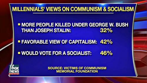 Исследование показало, что в поколении миллениума* 32% — то есть треть! — считает, что при Джордже Буше-младшем было убито больше людей, чем при российском тиране Иосифе Сталине. Ну не поразительно ли?