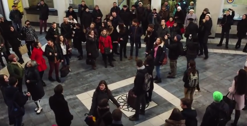 К акции присоединилась Москва: 50 человек спели на Киевском вокзале песню «Распрягайте, хлопцы, коней».