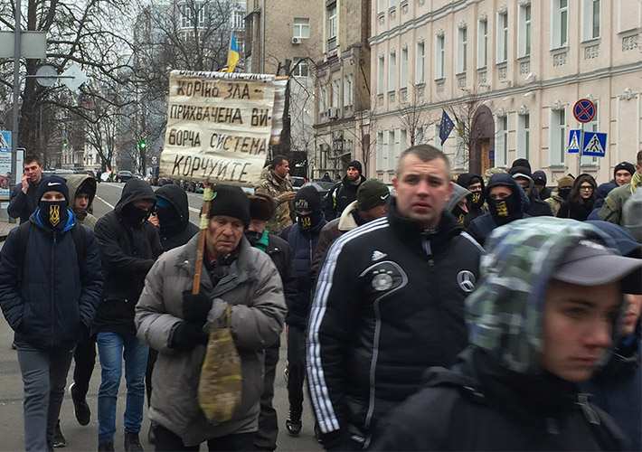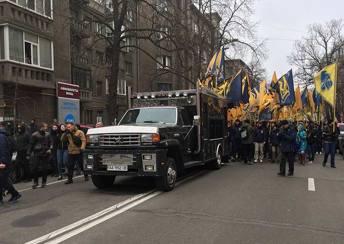 Неонацисты из «Азова» и его партии «Национальный корпус» проводят марш в центре Киева.