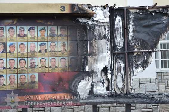 В Луцке сгорела часть информационного стенда «Погибли за независимость Украины», посвященного «небесной сотне», а также боевикам, принимавшим участие в карательной операции Киева на Донбассе.