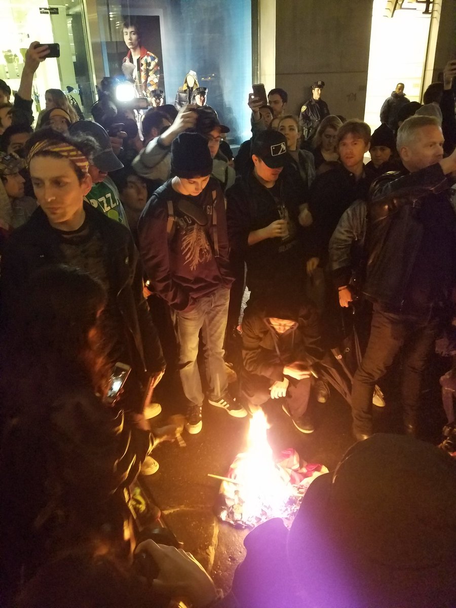 На протестных мероприятиях осквернение государственной символики стало доброй традицией. В соцсетях распространилось множество фотографий и роликов, а также последовала волна возмущения пользователей, несогласных с агрессивными методами протестующих.