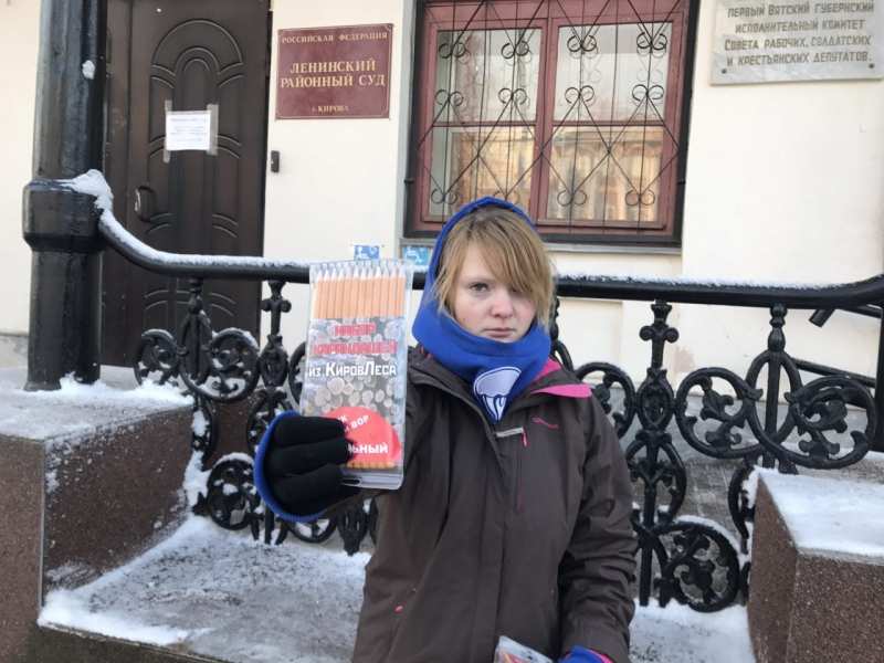 Активисты «Антимайдана» вручили Алексею Навальному ватник с надписью «Леша вор». Подарок преподнесли у здания Ленинского суда в Кирове, где сегодня проходит повторное рассмотрение уголовного дела о хищении имущества государственного предприятия «Кировлес».