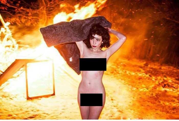Новости украинской культуры: голая «художница» устроила костер из своих картин в Киеве (ФОТО)