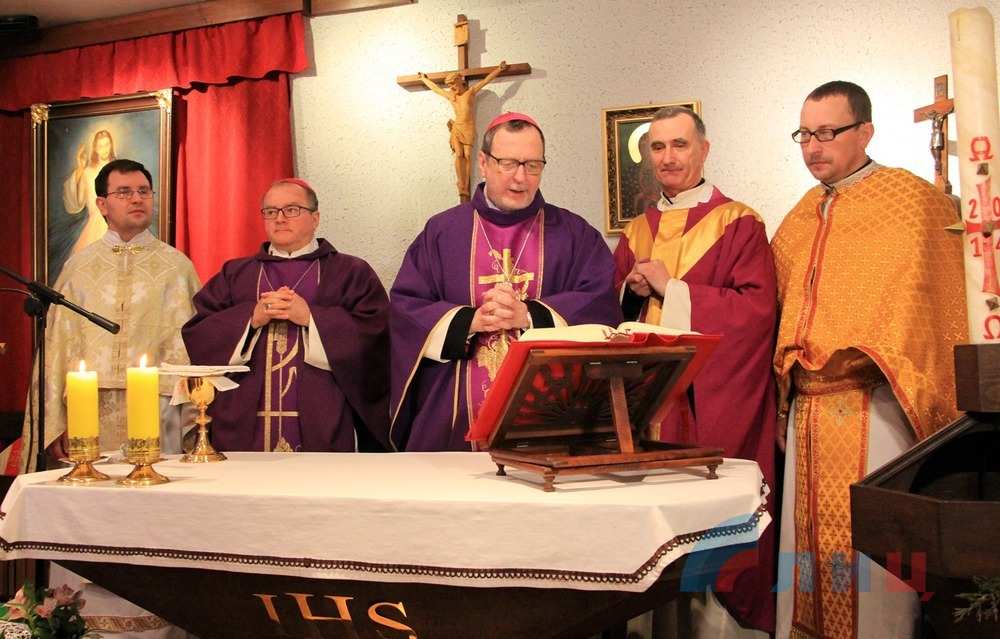 Дипломатический представитель папы Римского на Украине Клаудио Гуджеротти провел воскресную службу в луганском римско-католическом приходе Рождества Пресвятой Девы Марии. Об этом с места событий передает корреспондент ЛИЦ.