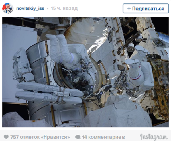Российский космонавт Олег Новицкий, находящийся на борту МКС, завел страницу в сервисе Instagram.