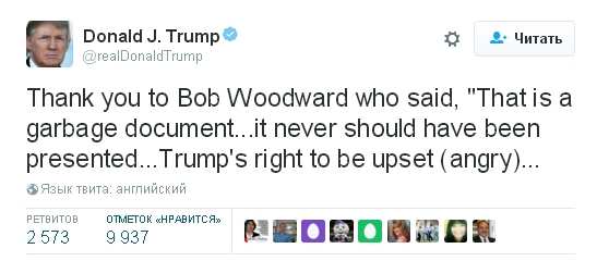 «Те (прежние – прим. «Русской Весны») руководители разведки сделали здесь ошибку, и когда люди совершают ошибки, они должны извиняться», – написал Трамп на своей официальной страничке в Twitter.
