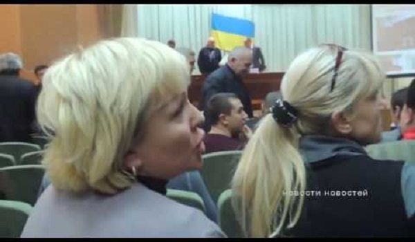 Председатель пытается продолжить обсуждение, но в зале не утихают крики. В задней части зала мужчина в камуфляже кричит на украинском о том, как в 14-м году «не побоялся выйти». Заседание окончательно сорвано.