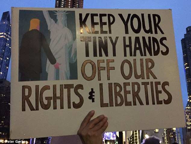 Акция протеста, в которой приняли участие мэр города Билл де Блазио, голливудские звезды Роберт Де Ниро, Марк Руффало, Алек Болдуин, режиссер Майкл Мур и певица Шер, состоялась за день до инаугурации нового главы государства.
