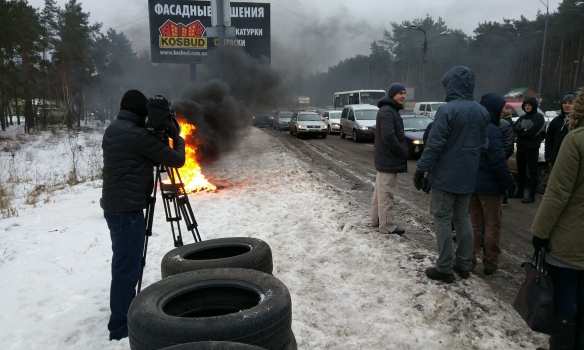 «Люди заблокировали две полосы движения, подожгли шины и принесли еще шины, но поджигать их пока не будут. Здесь в основном автомобили с иностранной регистрацией, с номерами литовскими, польскими и номерами Словакии», — рассказывает корреспондент одного из украинских телеканалов, который находится у Бориспольской трассы.