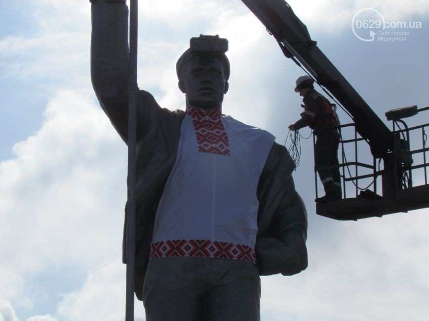 Символ советского трудового Мариуполя одели в вышиванку (ФОТО, ВИДЕО)