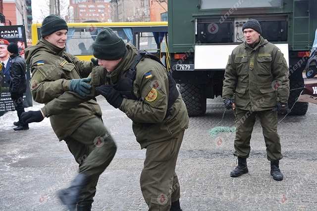 Вместо «валентинок» военные в центре города, на Европейской площади, раздавали им приглашения в нацгвардию, стилизованные под повестки.