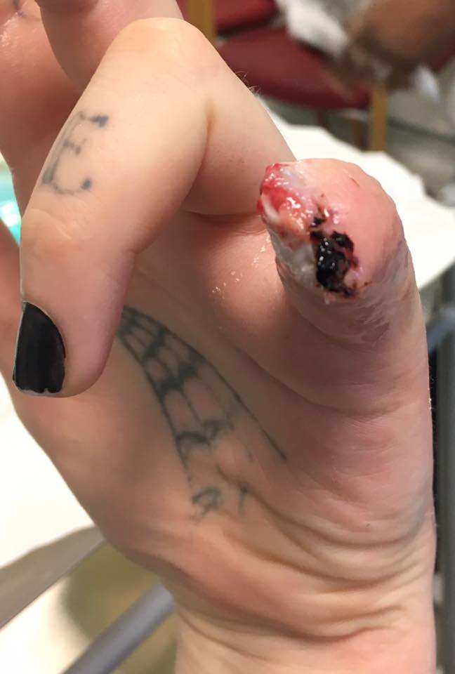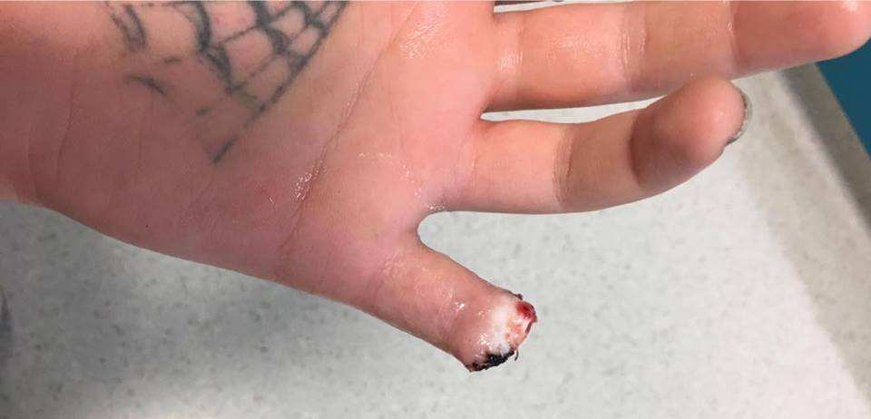 Фото травмированной руки и часть пальца она разместила на своей странице в Facebook.