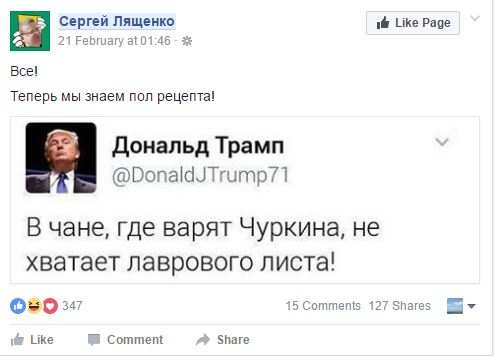 Лященко разместил на своей странице в социальной сети один из многочисленных глумливых постов, появившихся после новости о кончине Чуркина. Он содержал намек ещё и на министра иностранных дел России Сергея Лаврова.