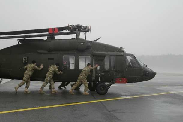 Вместе с техникой прибыли солдаты подразделения «Феникс» 10-й авиабригады 3-го авиабатальона США «Phoenix».