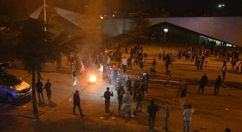 Вскоре после этого на улицу вышло около тысячи людей, которые перекрыли центральные улицы города и начали жечь машины. Протестующие пытались забросать полицейских камнями, петардами и бутылками с зажигательной смесью. Полиция применила против них слезоточивый газ и резиновые пули.
