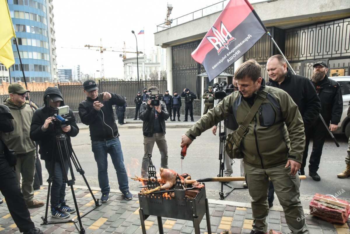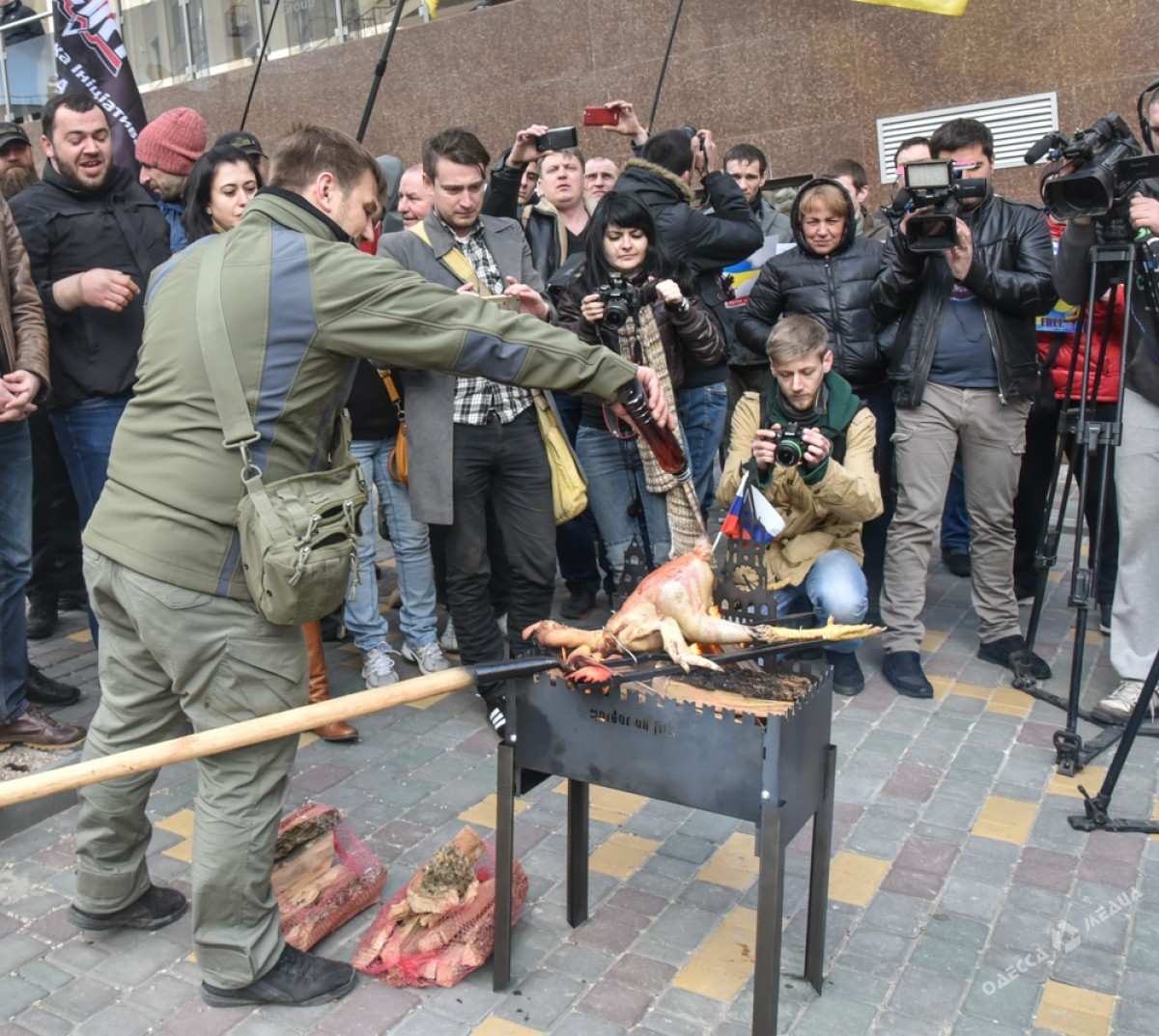 Украинские «патриоты» жарили петуха возле консульства России в Одессе (ФОТО, ВИДЕО)