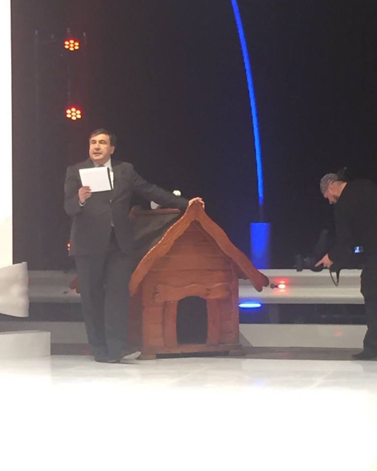 А на вечер меня пригласили на „Свободу слова“ ICTV, и если в следующие пару часов Порошенко опять, как в прошлый раз, туда не позвонит, надеюсь, там тоже будет возможность с вами пообщаться с конкретной программой», — сообщил Саакашвили.