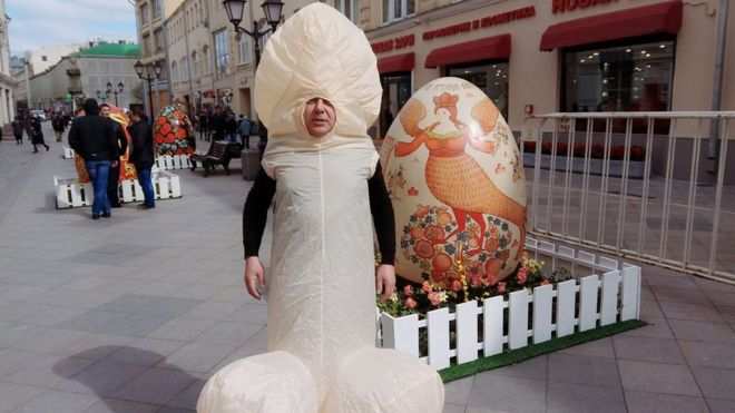Телеведущий либерального канала «Дождь» Павел Лобков задержан в центре Москвы в костюме мужских гениталий.