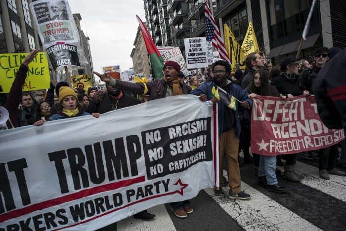 Нью-йоркские демонстранты собрались на так называемый «Налоговый марш» в районе Средний Манхэттен, они хотят привлечь внимание к отказу президента публиковать свою налоговую декларацию. Шествие началось в Брайант-парке, где, по оценкам Рейтер, собрались пять тысяч протестующих.