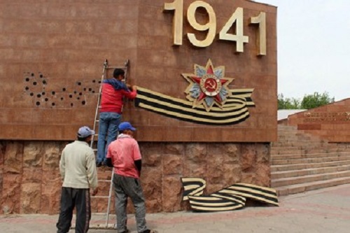 За три дня до празднования 72-й годовщины Дня Победы в Великой Отечественной Войне городские власти Шымкента* решили снять украшения в виде гвардейских лент с Обелиска Славы, расположенного в Парке им. Абая.
