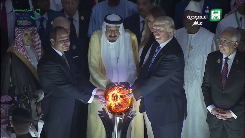 Пользователи соцсетей смеются над странным ритуалом президента США Дональда Трампа, который в ходе своего визита в Эр-Рияд вместе с королем Саудовской Аравии Салманом ибн Абдул-Азизом Аль Саудом и президентом Египта Абделем Фаттах ас-Сиси позировал, положив руки на светящийся глобус.