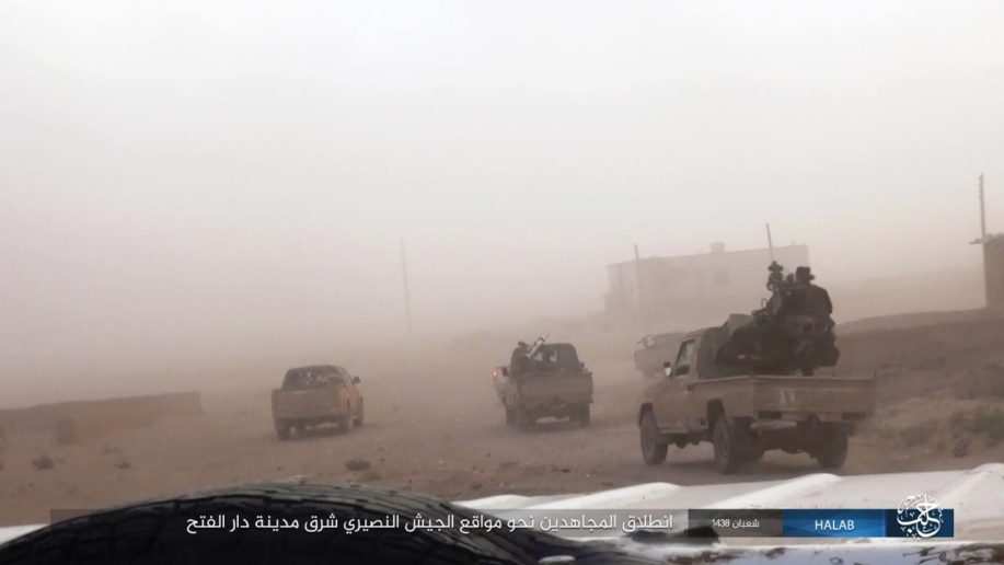 Также группировка в последние дни направила группу смертников на начиненных взрывчаткой автомобилях, которые частично смогли прорваться и взорвались вблизи позиций Армии Сирии.