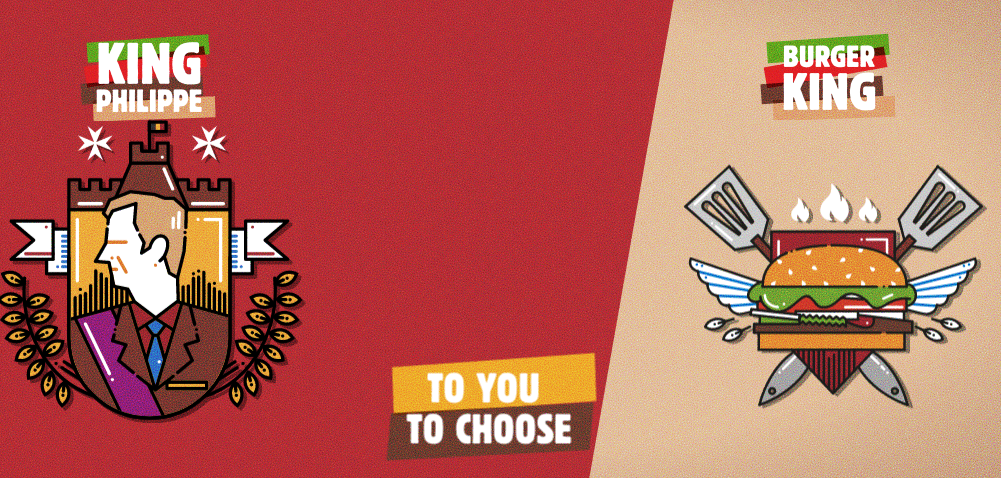 Burger King, который в конце июня должен начать работу в стране, предложил бельгийцам выбрать между королем Филиппом и «королем бургеров» — символом ресторанной сети. При этом, если пользователь выбирает короля Бельгии, система дважды уточняет, уверен ли клиент в своем выборе. «Вы уверены? Он ведь не будет готовить вам картофель фри», — говорится в объявлении.
