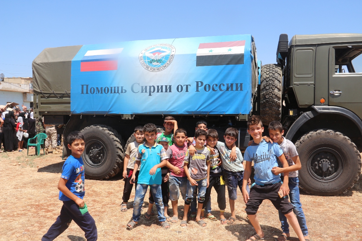 1 августа военнослужащими российского Центра по примирению враждующих сторон на территории САР была проведена гуманитарная акция в населенном пункте Рабиаа провинции Хама.