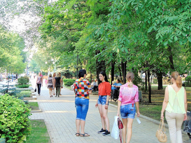 Прежде чем расстаться, я прошу отвезти меня в какой-нибудь парк, чтобы сделать несколько снимков дончан, ибо справедливо подозреваю, что в такое пекло людей можно найти только там, и я не ошибся. Меня привезли на Пушкинский бульвар, и здесь людей довольно много.