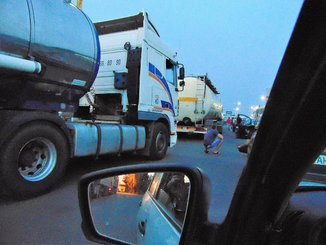 Впереди меня семейная пара из Украины с маленьким ребёнком. Кондиционера в машине нет и ребёнка то и дело берут на руки, чтобы погулять с ним.