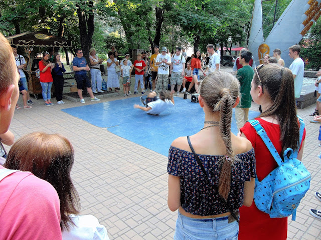 Ребята брейк-дансеры довольно лихо проделывают сложные па на радость всем присутствующим.
