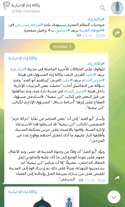 Так, в одном из сообщений в своём официальном Telegram-канале «Джебхат ан-Нусра»* приводит слова одного из своих главарей в провинции Алеппо Ибрагима Абу Аль-Абеда. Фото и видео обращения представлено не было. Однако это неудивительно, потому что еще 26 сентября отрядом «Хезболлы» была подтверждена его ликвидация в провинции Алеппо (см. фото ниже).