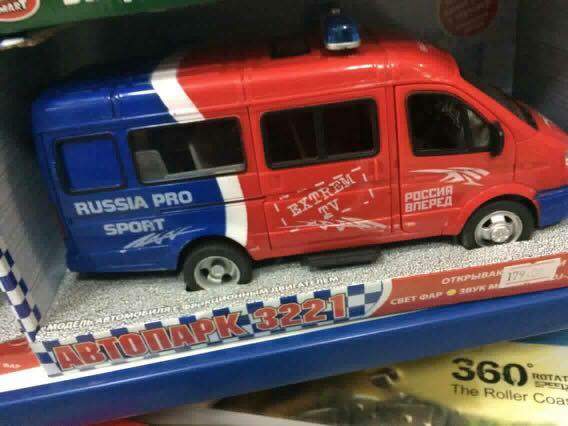 Жители Тернополя активно обсуждают игрушечную машинку с надписью «Россия, вперёд», обнаруженную одним из пользователей Сети в местном супермаркете «Мама».