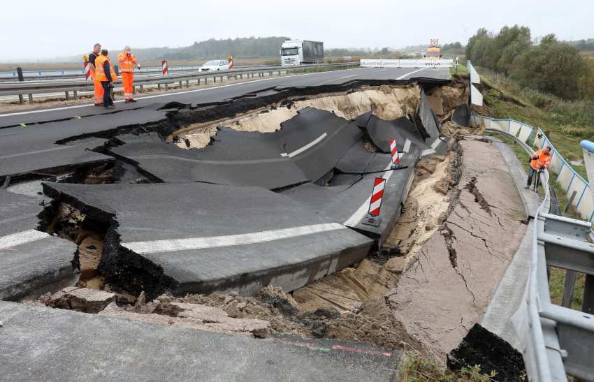 Участок скоростной трассы А20 обрушился в районе города Трибзеес в земле Мекленбург-Передняя Померания. Дорожные службы своевременно приняли меры предосторожности, в этой связи жертв и пострадавших нет, сообщает информационный портал SPON.