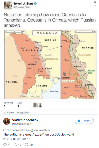 Некоторые комментаторы отыскали старые твиты Старра, которые свидетельствуют об отсутствии у него базовых знаний о регионе. Так, в 2014 году колумнист написал, что Одесса расположена в Крыму, рядом с Приднестровьем.