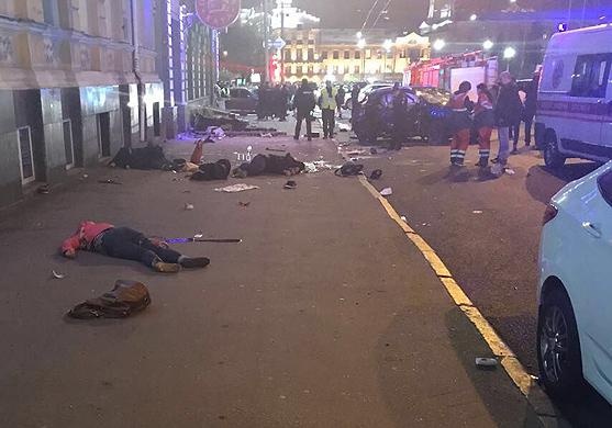 В Харькове около 20:45 на улице Сумской внедорожник Lexus въехал в толпу людей, есть погибшие и раненые.