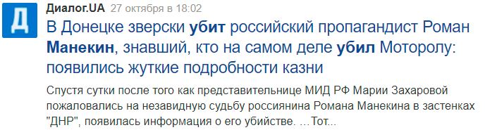 Такими словами начал своё видеообращение донецкий блогер Роман Манекин, об убийстве которого в «застенках ДНР» писала украинская и либеральная российская пресса, а также выехавшие за пределы Республики ополченцы и бывшие чиновники.
