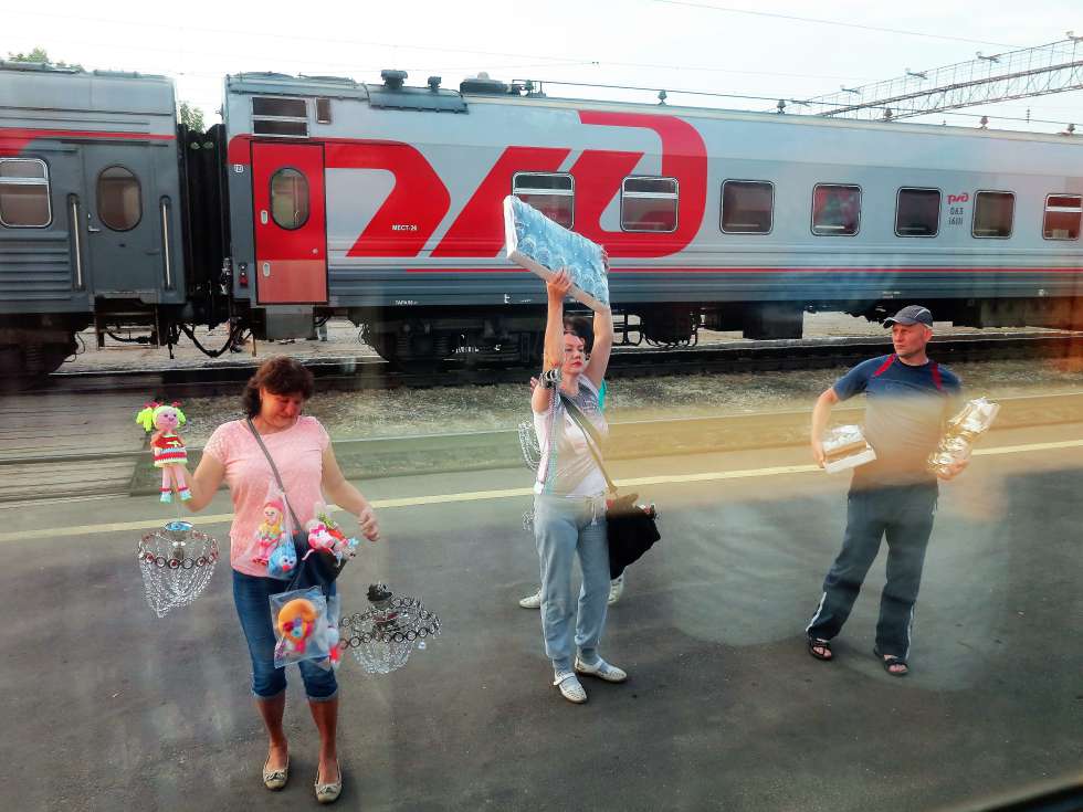 На остановках люди выходили на платформу, чтобы размять ноги и купить безделушки для детей, еду и напитки, сувениры или местные ремесленные изделия. Торговлей у поездов в основном занимаются женщины. Проводницы стоят у входа в вагон и следят за тем, чтобы никого не забыли на очередной остановке.