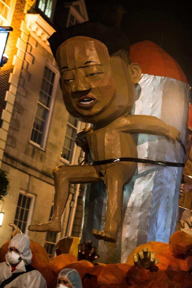Англичане зажгли в прямом и переносном смыслах, предав огню, гигантские фигуры Ким Чен Ына, Трампа, Терезы Мэй и Вайнштейна. При этом Ын и Трамп были голыми, а на причинном месте у них красовался знак радиационной опасности.