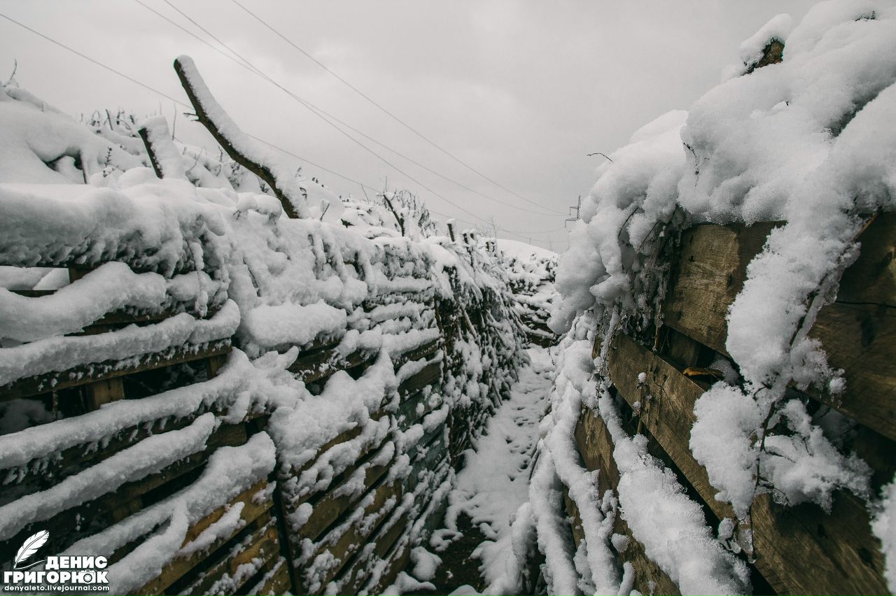 «Седой» сегодня будет нашим сопровождающим по окопам. Траншеи, будто незаживающие рубцы, бегут по белоснежному полю. Снежные кристаллы, ломаясь, хрустят под нашими ботинками.