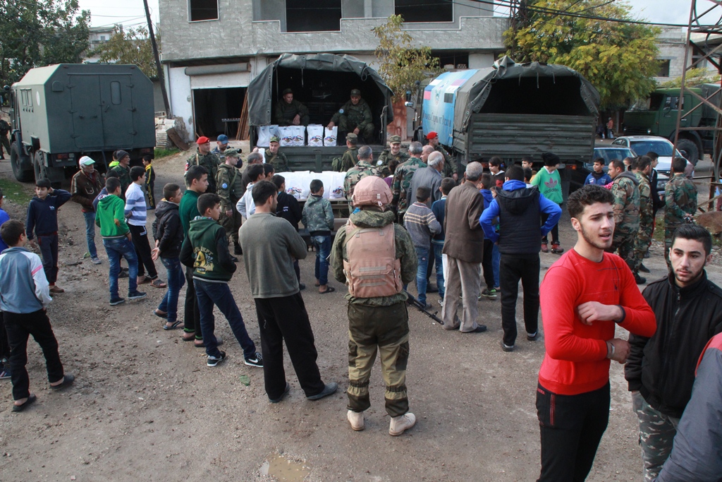 Российским Центром по примирению враждующих сторон в Сирийской Арабской Республике была проведена очередная гуманитарная акция. На этот раз помощь была оказана жителям городка Шения в провинции Хомс.