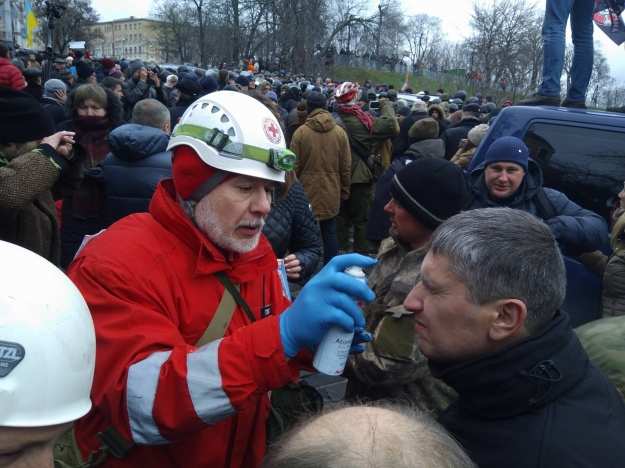 «Побратимы» Михо пытаются применять силу к правоохранителям, силовики в ответ применили слезоточивый газ. Вспыхивают потасовки.
