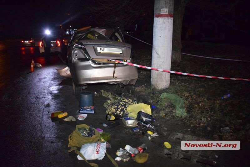 В Николаеве вечером 9 декабря пьяный военный на легковом автомобиле врезался в столб, разбив автомобиль, и сбежал с места ДТП.